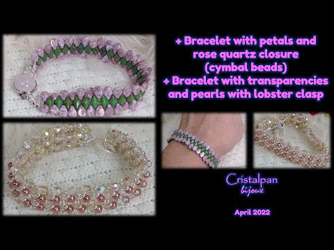 Bracelets with petals and rose quartz closure and with transparencies an...